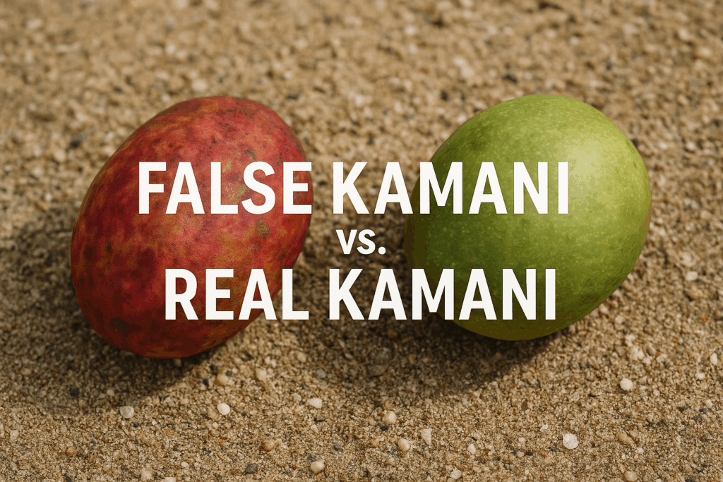 TraitReal Kamani (Calophyllum inophyllum)False Kamani (Terminalia catappa) FruitRound, oily, not edibleOval, fibrous, nut inside is edible OilTamanu oil – sacred, medicinalLight edible oil – cook, moisturize, soap UsesWound care, canoe polish, carvingsSnacks, jam, juice, dye, rope preservative Tree PersonalityAncient healerScrappy beach hustler